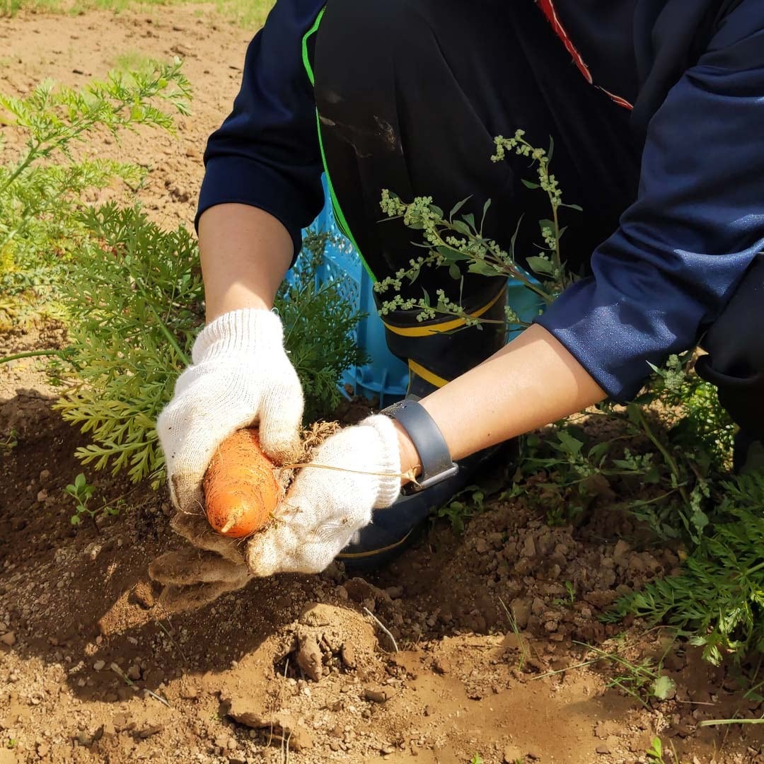 鮮やかな色と、フルーツのような強い甘みが特徴。鮮度を保つため土付きでお届けします。